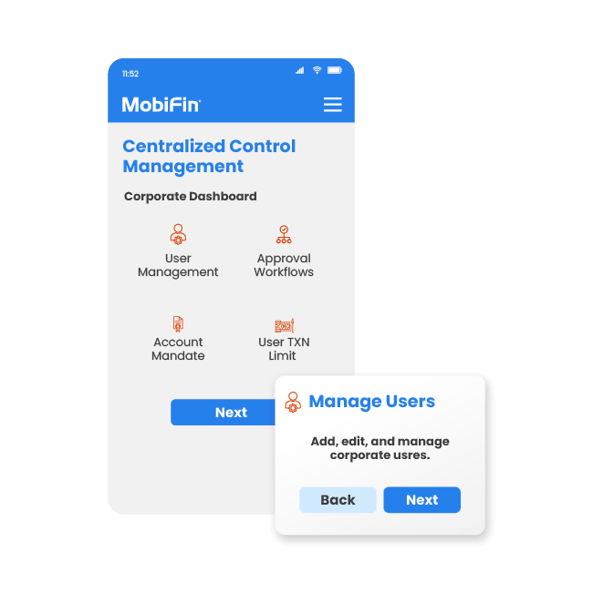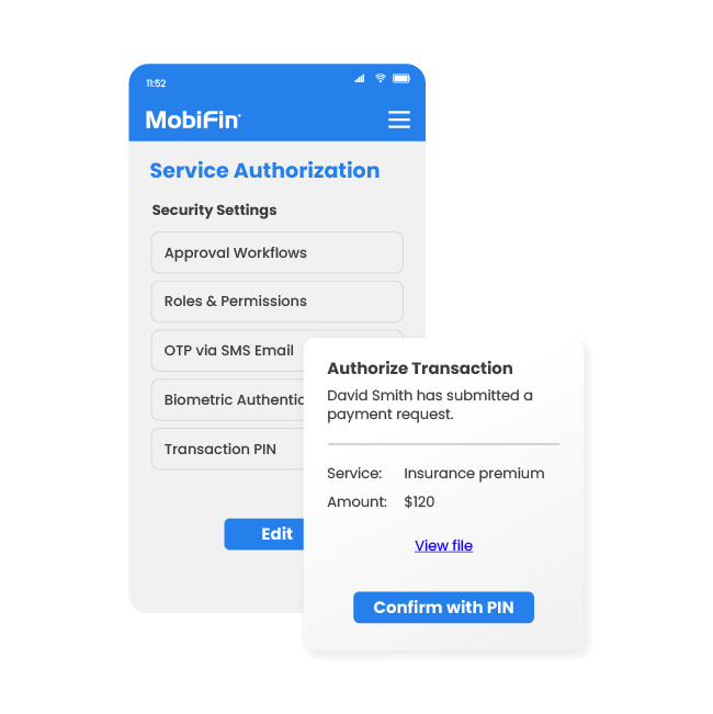 Facilitates secure financial operations by enforcing approval workflows and managing roles effectively. Enables flexible authorization through OTP, passwords, PINs, or security questions. Strengthens control, reduces fraud risk, and enhances trust by delivering multi-layered protection for transactions. Creates resilience and compliance in all digital payment activities.