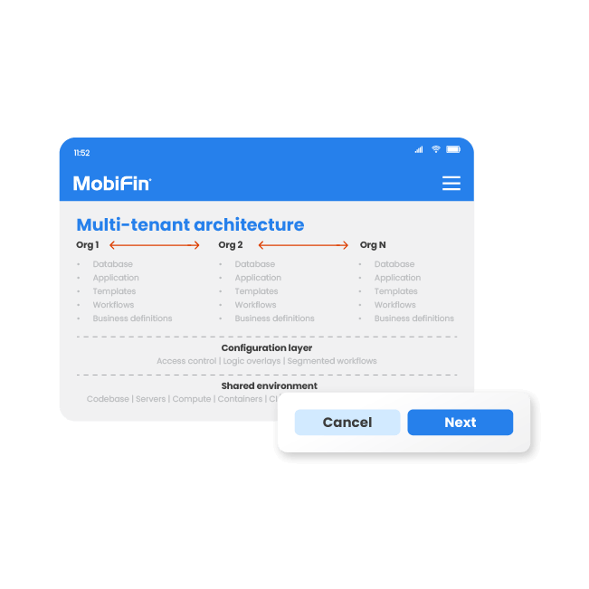 Arsitektur Tapestry mendukung multi-tenancy dengan lingkungan bersama, sehingga memungkinkan organisasi untuk mengonfigurasi sekali dan menerapkannya di mana saja. Grup alur kerja yang tersegmentasi dan berversi, lapisan logika khusus penyewa, dan kontrol akses granular memungkinkan penggunaan ulang dan penskalaan yang aman di seluruh unit bisnis, geografi, atau segmen pelanggan. Perusahaan mendapatkan efisiensi dan tata kelola tanpa mengorbankan kelincahan.
